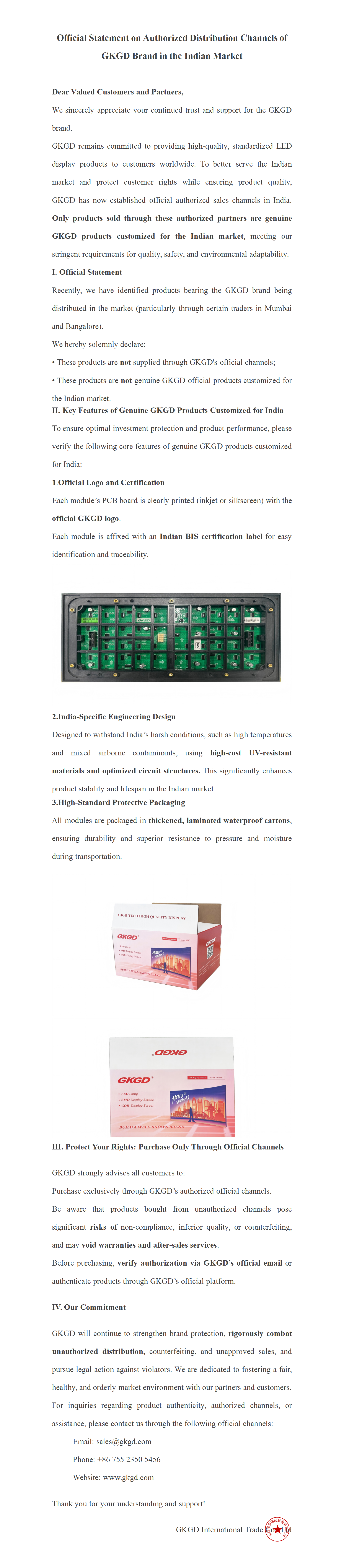 Official Statement on Authorized Distribution Channels of GKGD Brand in the Indian Market