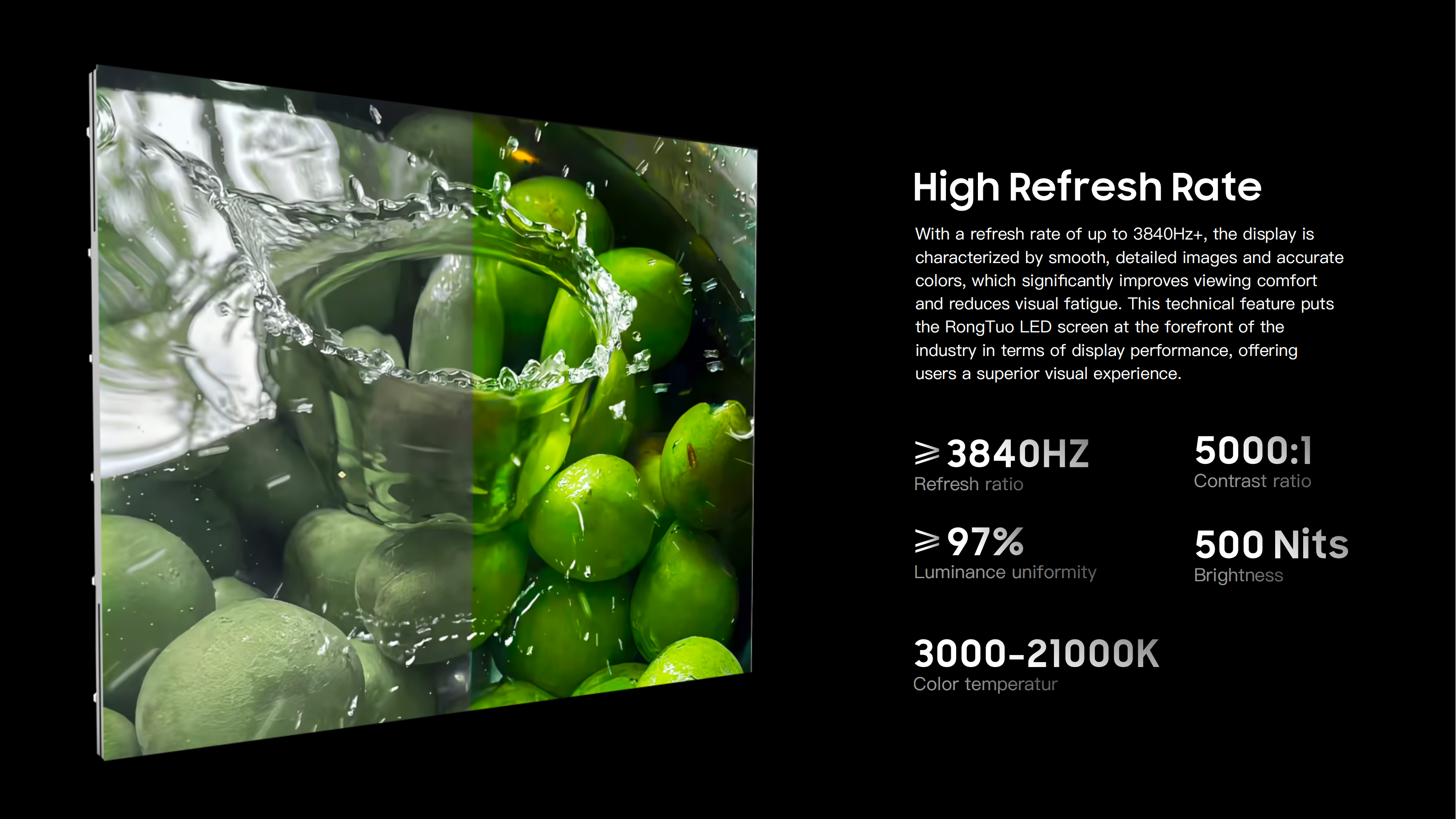 With a refresh rate exceeding 3840Hz, the display provides smooth, detailed visuals with precise color reproduction, ensuring an exceptional viewing experience.